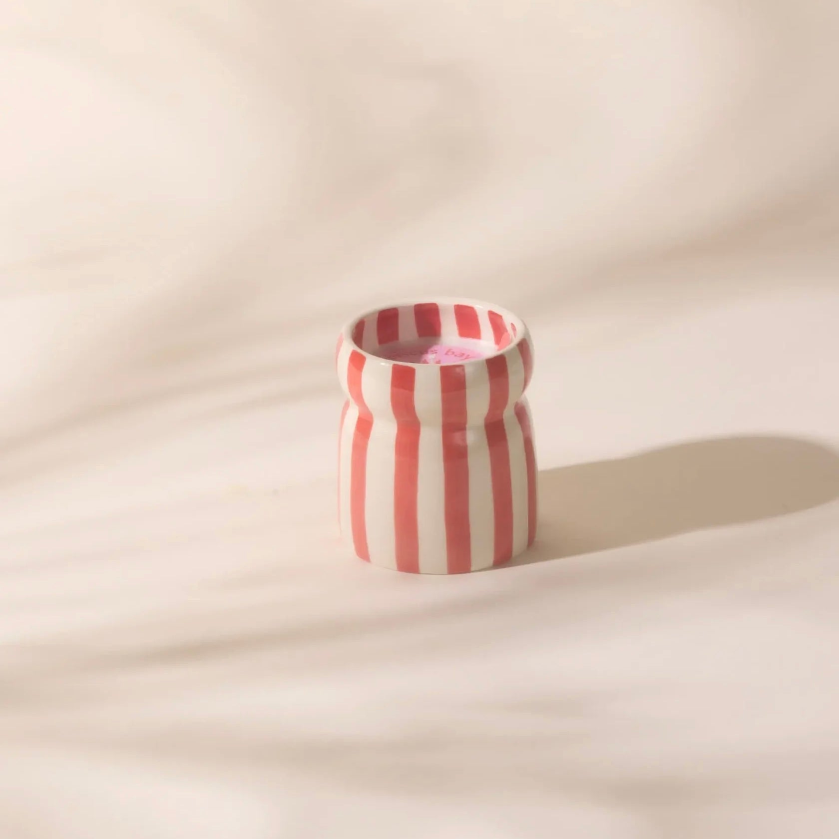 Transport yourself to the world’s most beautiful beaches with the Cabana collection, each designed to evoke the soothing, transformative scents of coastal destinations. These hand painted candles inspired by striped umbrellas are 6.5oz and feature a unique pinched form.