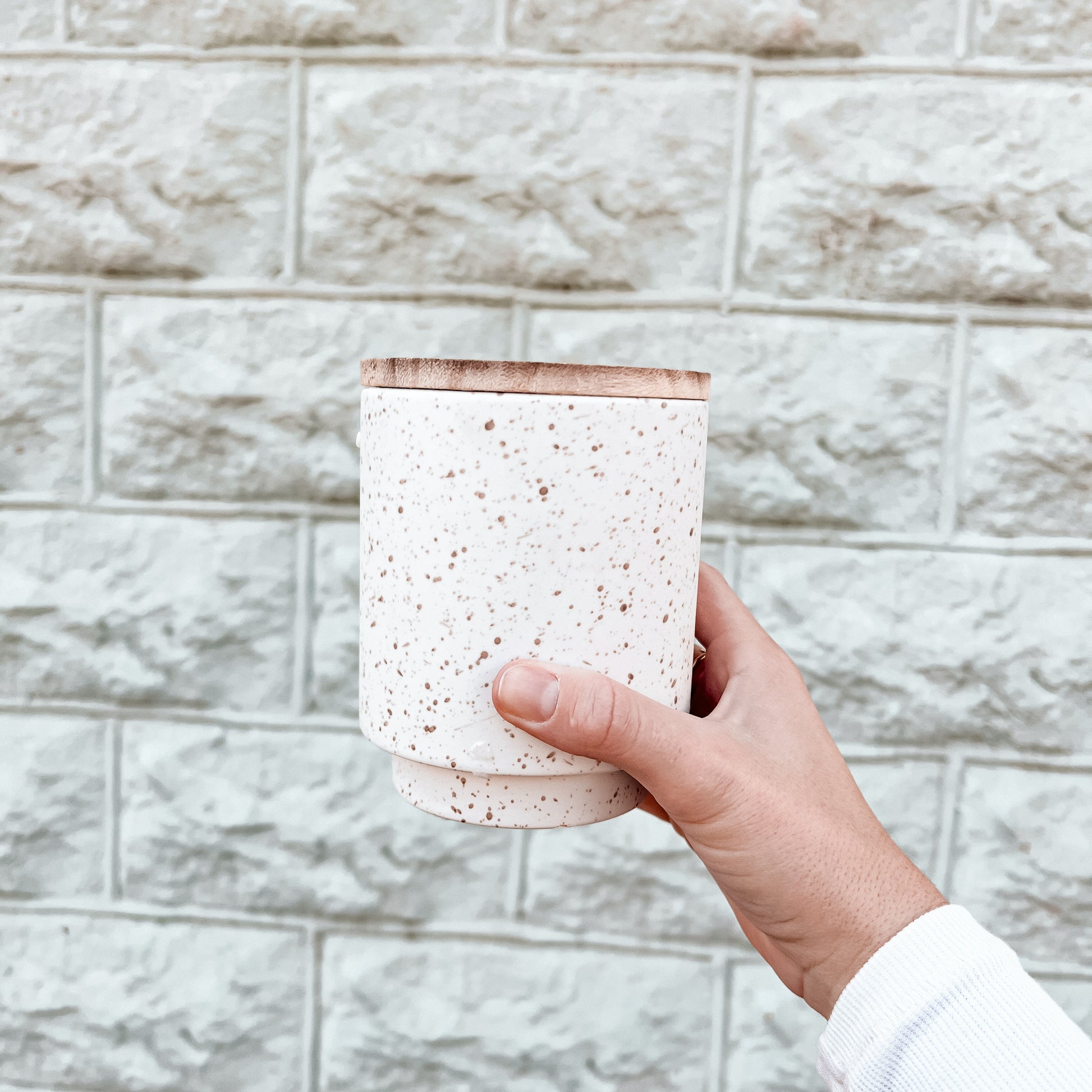 Filled with 14 oz. of American Soybean WaxTM. Measures 4.75"H x 4"W with a 70+ hour burn time
