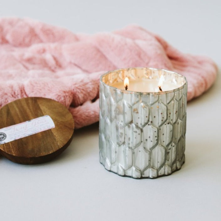 Perfect for creating ambiance in your personal space or gifting to a fellow Sweet Grace lover, Sweet Grace Collection candle #035's 15.7 oz grey textured vessel features a wooden lid and our best selling fragrance. As if the soy blend wax, lead-free cotton wick, and coveted Sweet Grace scent weren't enough, this candle provides 3 meals to a child in need through our Light A Candle Feed A Child program. Sweet Grace is filled with notes of passionate fruits, sparkling tea, and classic patchouli. Burn Time is up to 70 hours. Content/Weight is 15.7 oz/445 g.